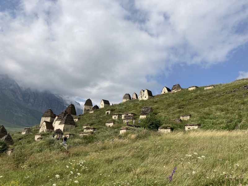 Далее переезд в Даргавскую котловину. "Осетинская Долина Фараонов" - Даргавский некрополь в народе сравнивают с египетской "Долиной Фараонов". По живописным горным склонам рассыпался целый "город" из, более чем, 90 склеповых сооружений оригинальной формы в виде белых каменных башенок-домиков с необычными крышами. Покой "Осетинской долины Фараонов" охраняют величественные Сторожевые башни XVI-XVII веков.По дороге увидим, Арт объект Осетинская буква «А». Вы увидите Башни Курта и Тага, другие фамильные башни, древние террасы, отвоеванные у гор для посадок земледельческих культур.